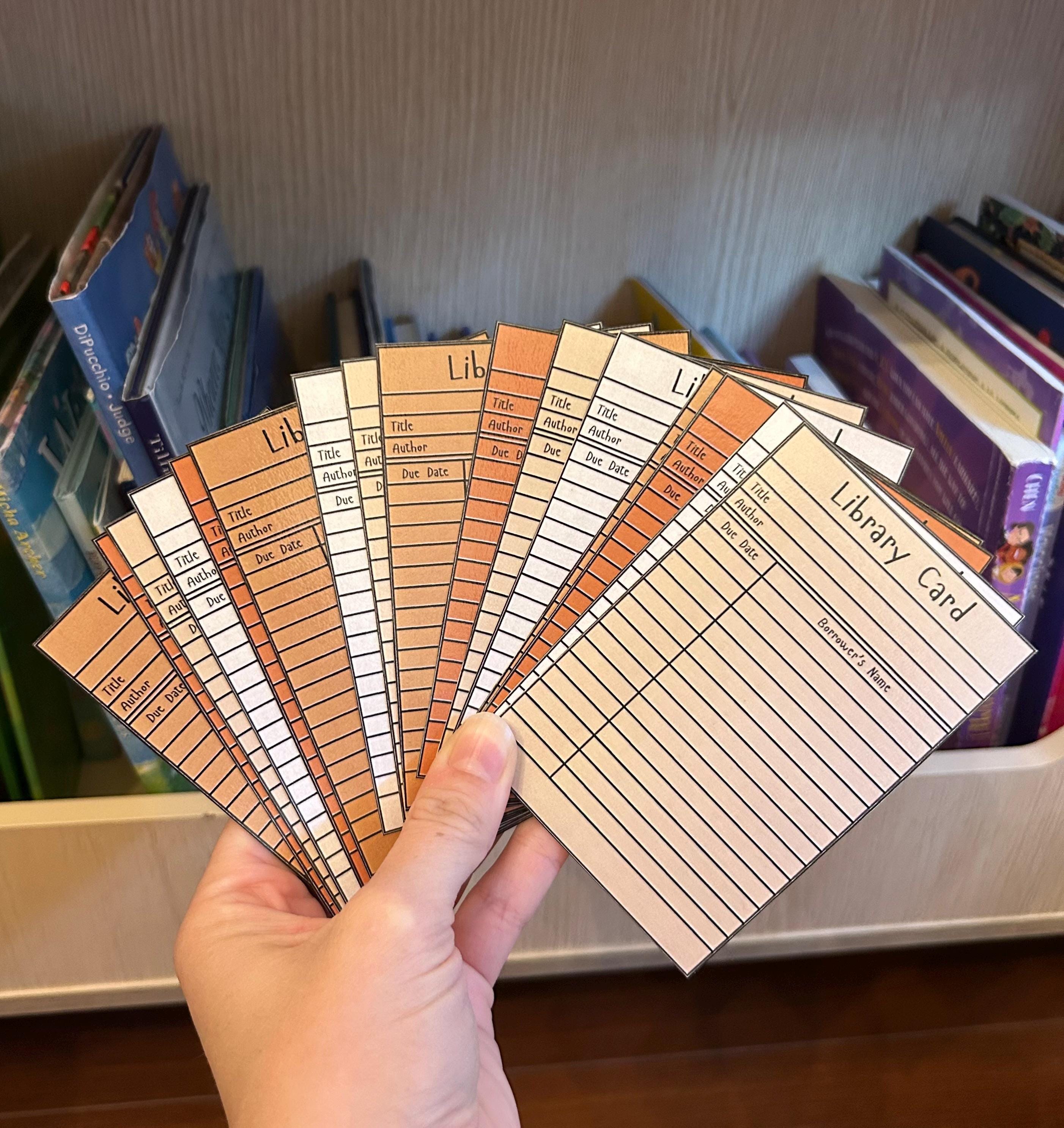 Included is a PDF with 4 Library Cards. Once printed, I suggest laminating your sheets for longevity, but you can always re-print them!